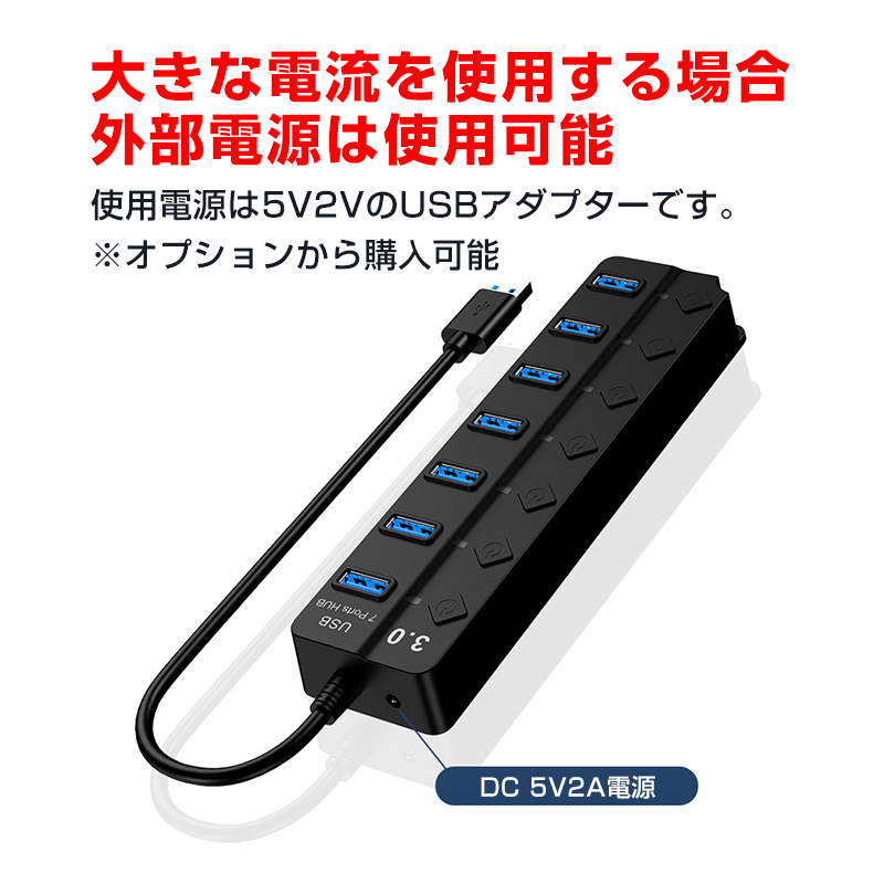 | USB3.0対応。USB機器が最大7台接続できます。ドライバ不要、すぐに使えます。 |