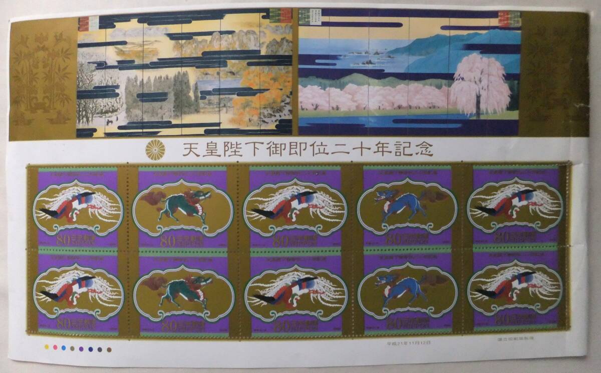 未使用「天皇陛下御即位二十年記念」記念切手シート 80円×10枚 收藏