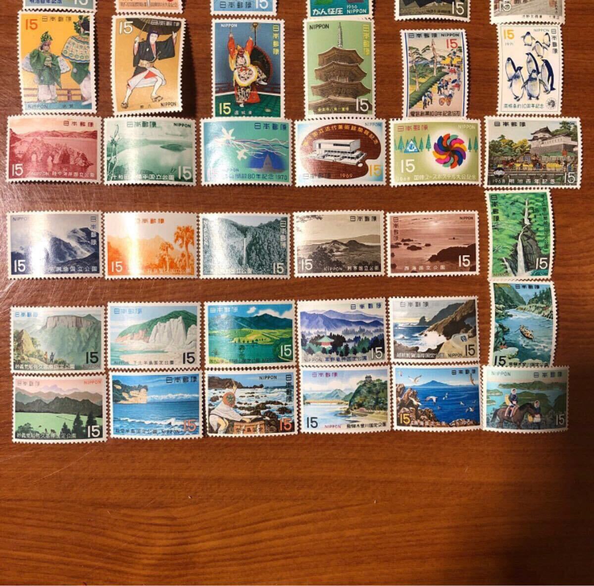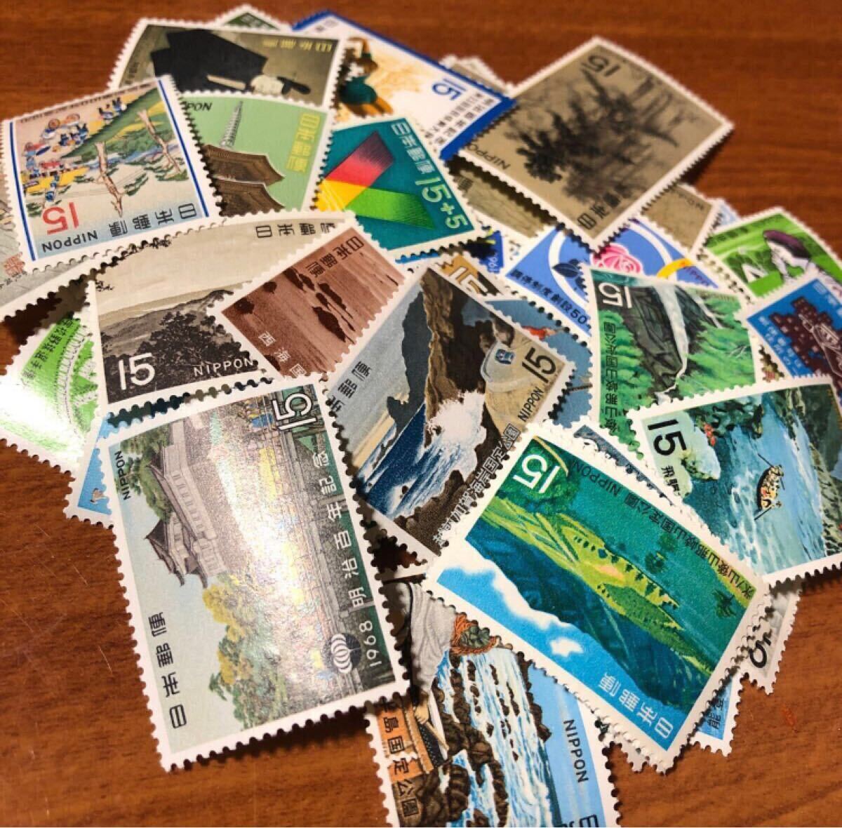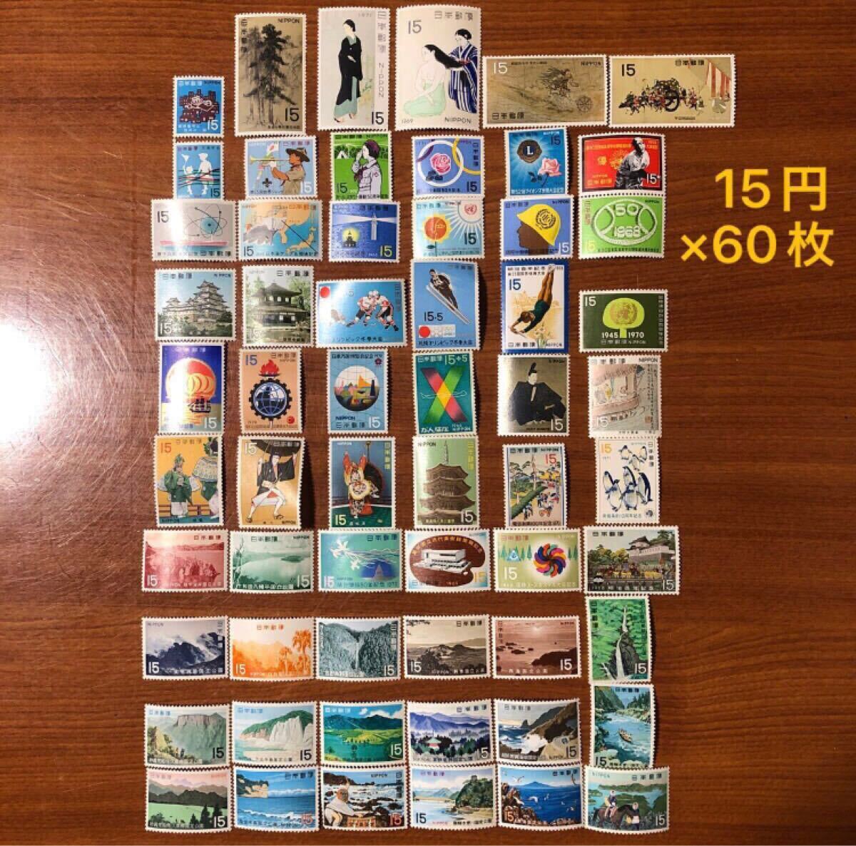 〈送料85~〉 記念切手 切手 15円 60枚 額面900円 60種類 国定公園 国立公園 札幌オリンピック 大阪万博 明治百年 バラエティー バラ 收藏