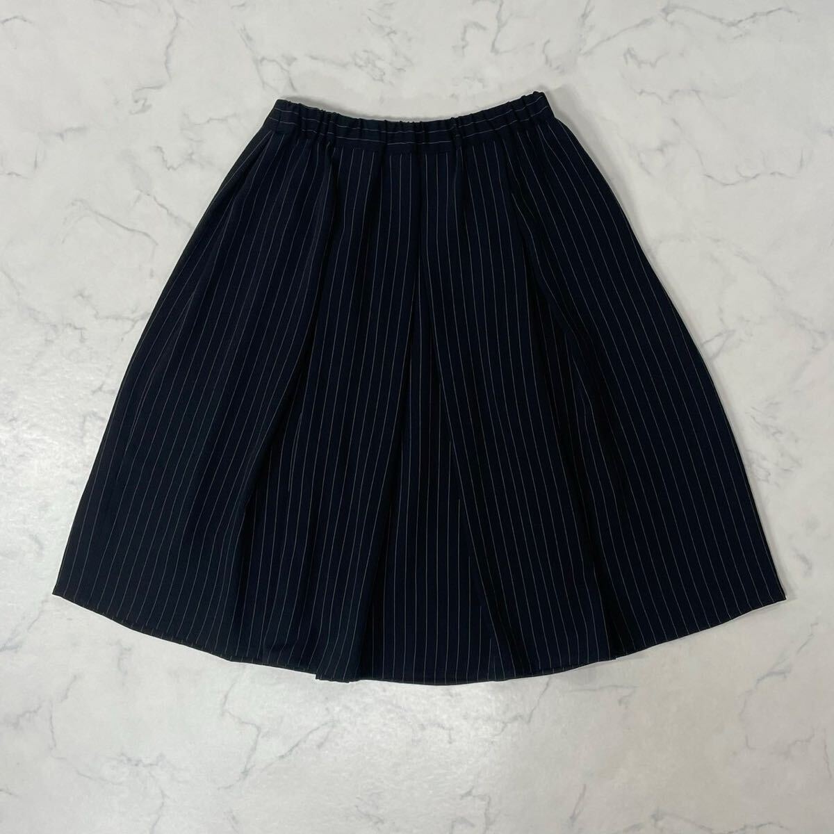 美品 SLOBE IENA スローブイエナ 大きめ ストライプ ウエストゴム プリーツ ひざ丈 スカート ブラック ホワイト 40 收藏