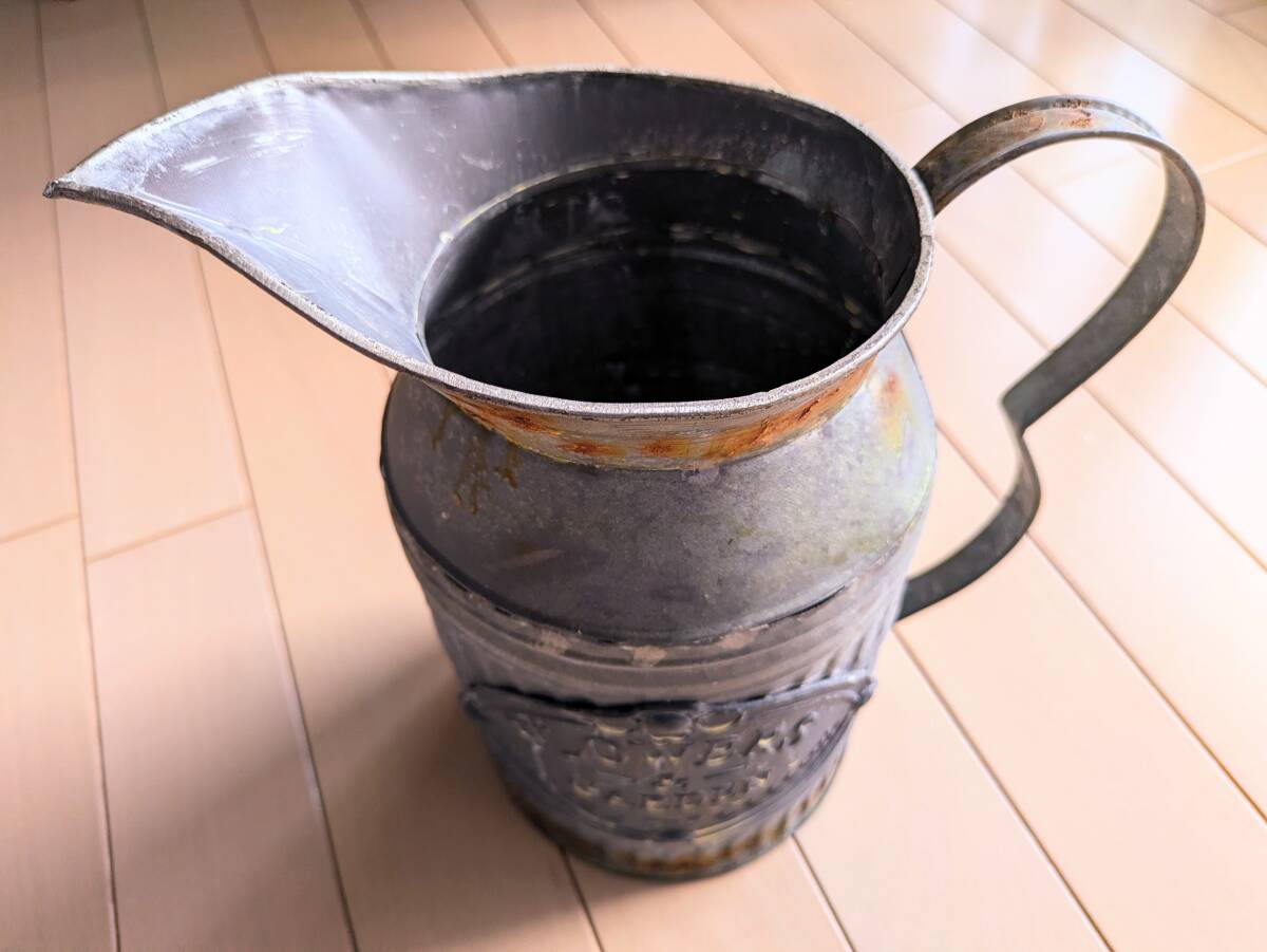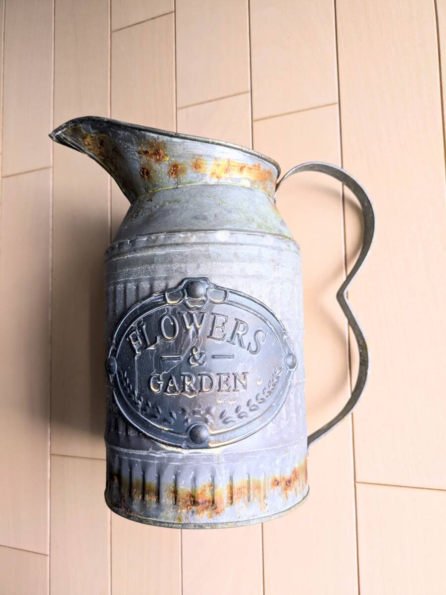 【アンティーク風 水差し ピッチャー】 底直径14cm 高さ25.5cm ビンテージ ガーデニング ブリキ 收藏