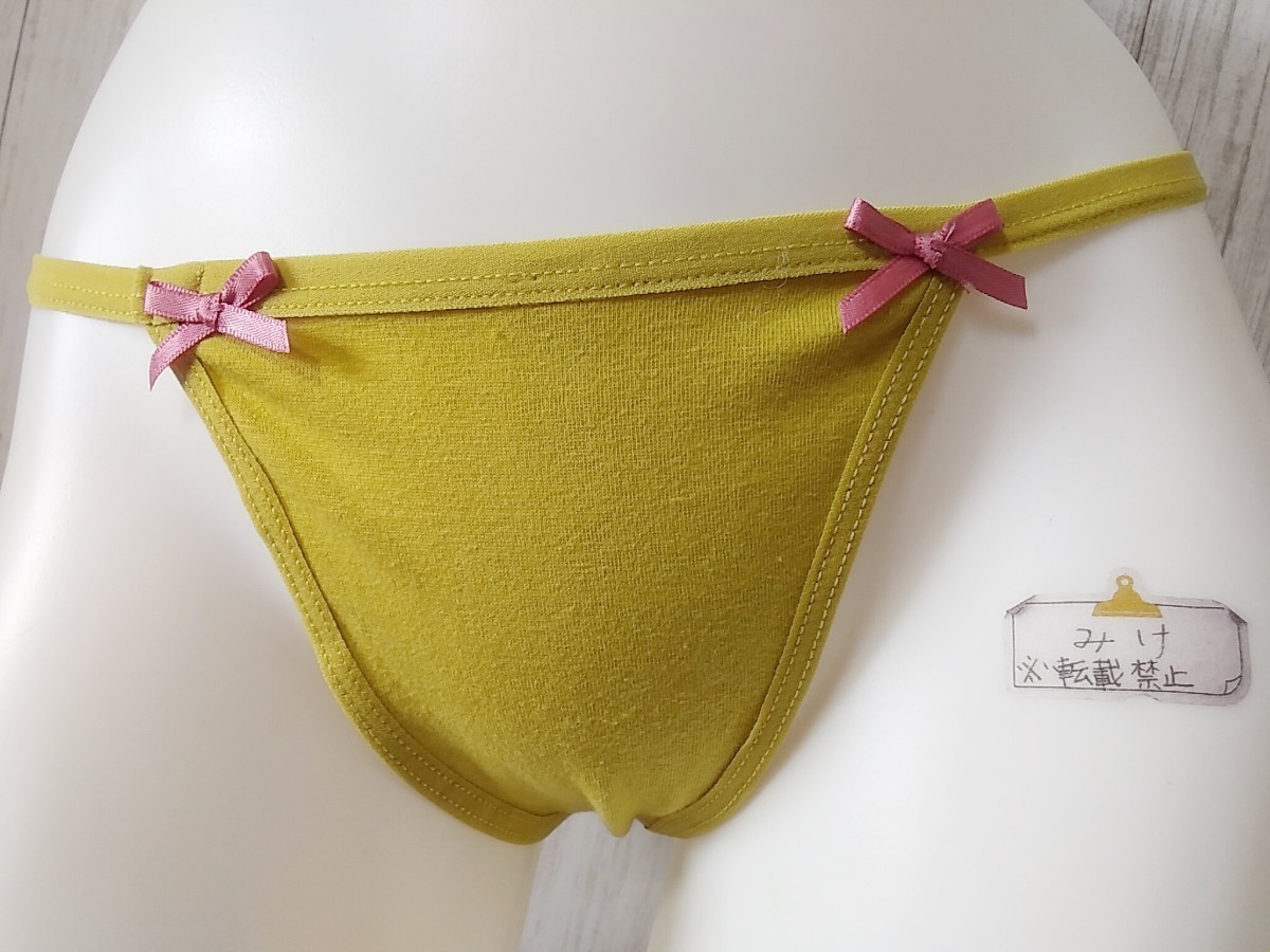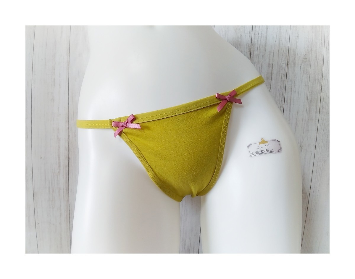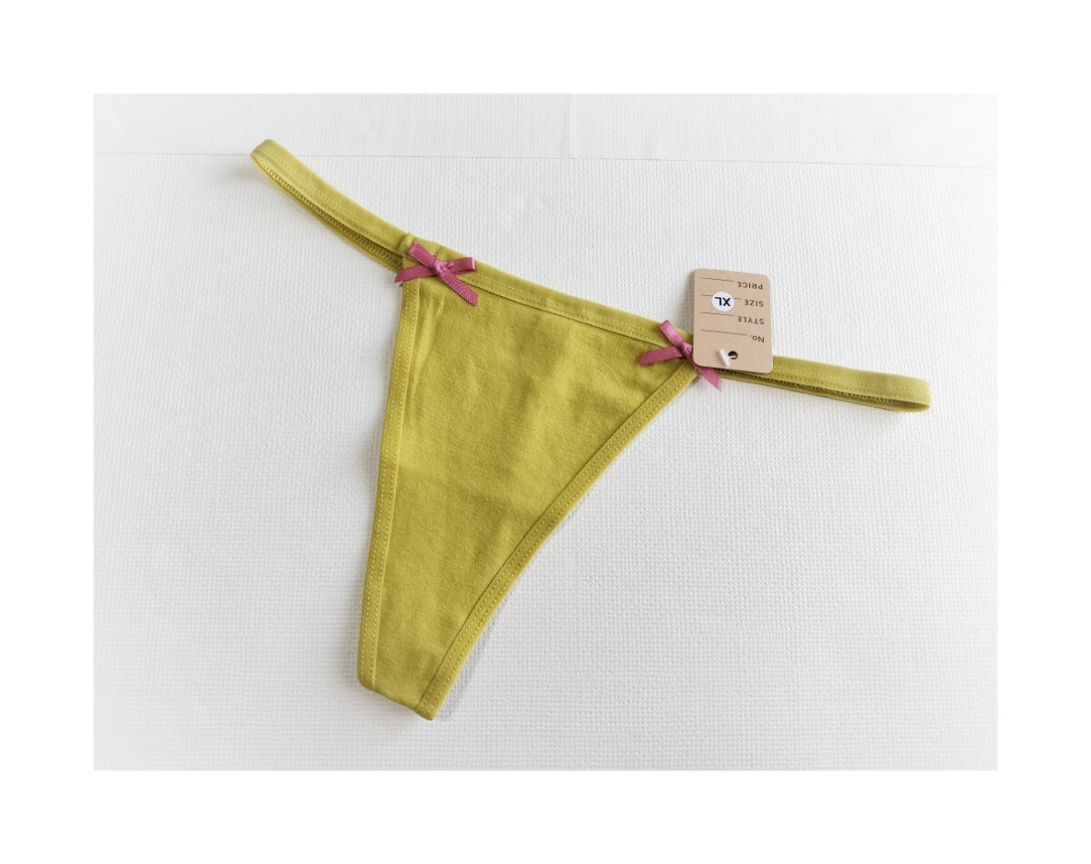 ★新品★ LL Tバック XL ショーツ 黄色味の強い黄緑系 イエロー系 リボン シンプル 履き込み浅め 大きいサイズ 收藏