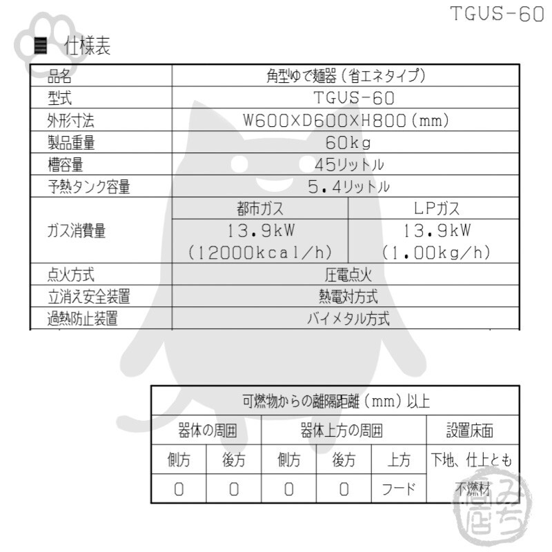 TGUS-A60 タニコー ゆで麺機 幅600奥600高800 收藏