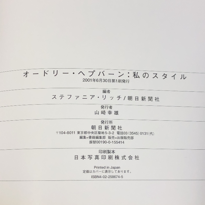 Audrey Hepburn オードリー・ヘプバーン 私のスタイル 朝日新聞社 写真集 收藏