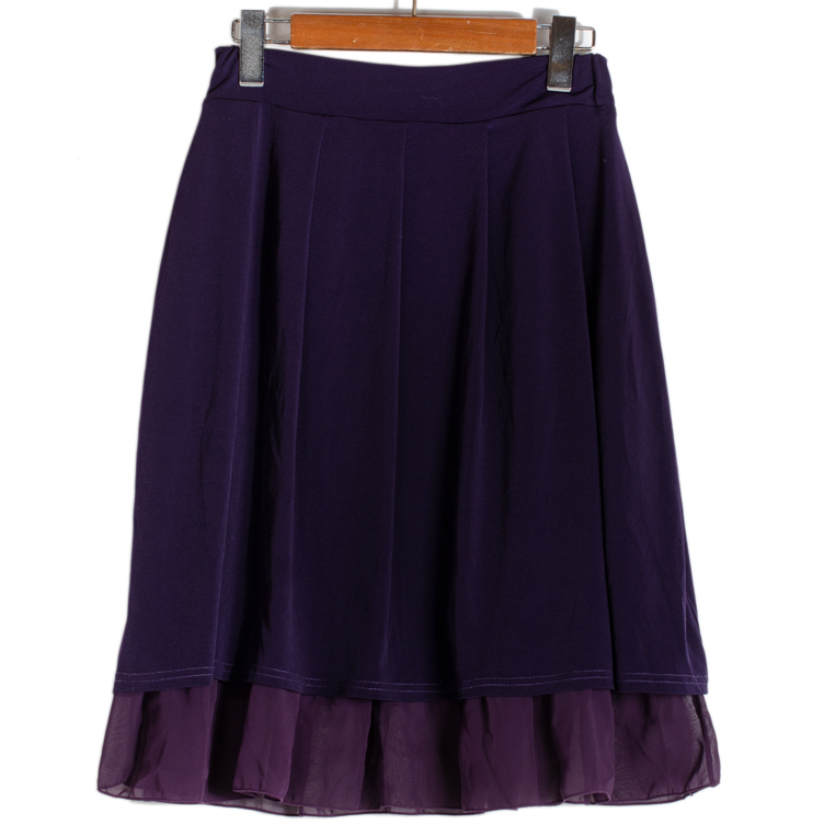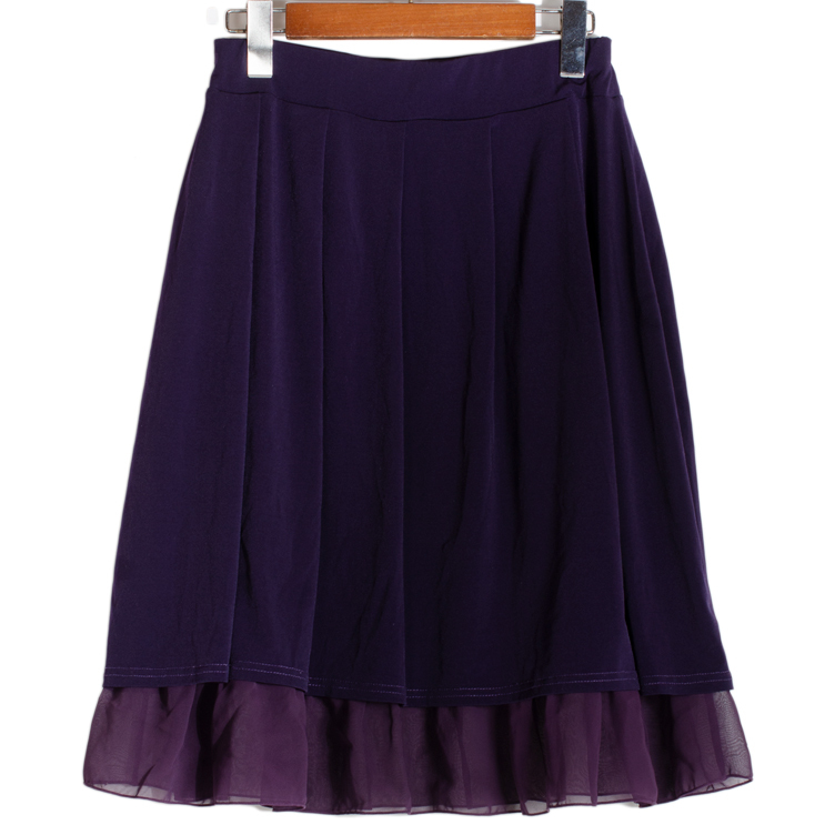 ストレッチ パープルスカート ウェストゴム 膝丈 シフォン フレア 衣装 レッスン 紫 Mサイズ 收藏