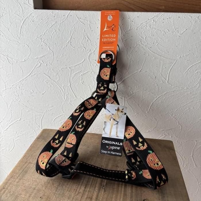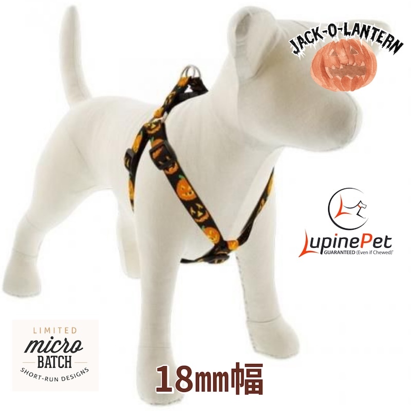 ステップインハーネス・Mサイズ 18mm幅 ジャックオーランタン柄 38-53cm LUPINEルパイン アメリカ製 軽量丈夫 中型犬 限定生産デザイン 收藏