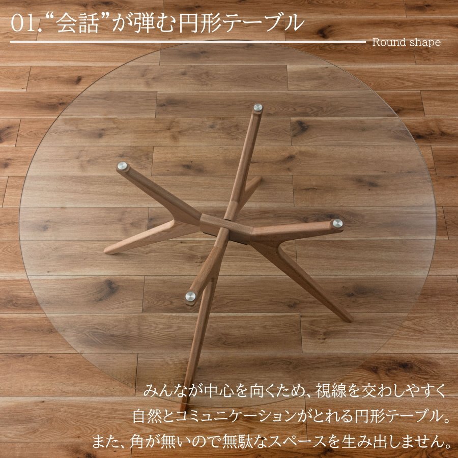 ダイニングテーブル 8mm強化ガラス オーク無垢 110cm丸 食卓 ラウンド 円形 円卓 丸型 おしゃれ 北欧 送料無料(一部除)新品未使用 B886B1 收藏