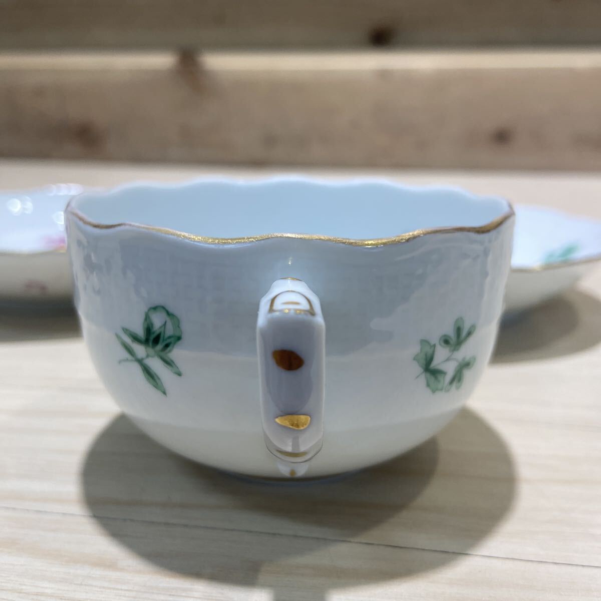 2 ヘレンド ペア 2客セット HEREND アポニー フラワー ティー カップ&ソーサー 食器 洋食器 收藏