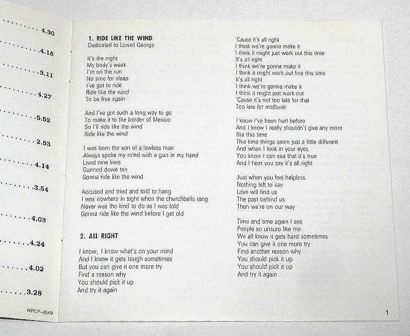 Warner Bros. Records  WPCP-4549  1991年発売盤