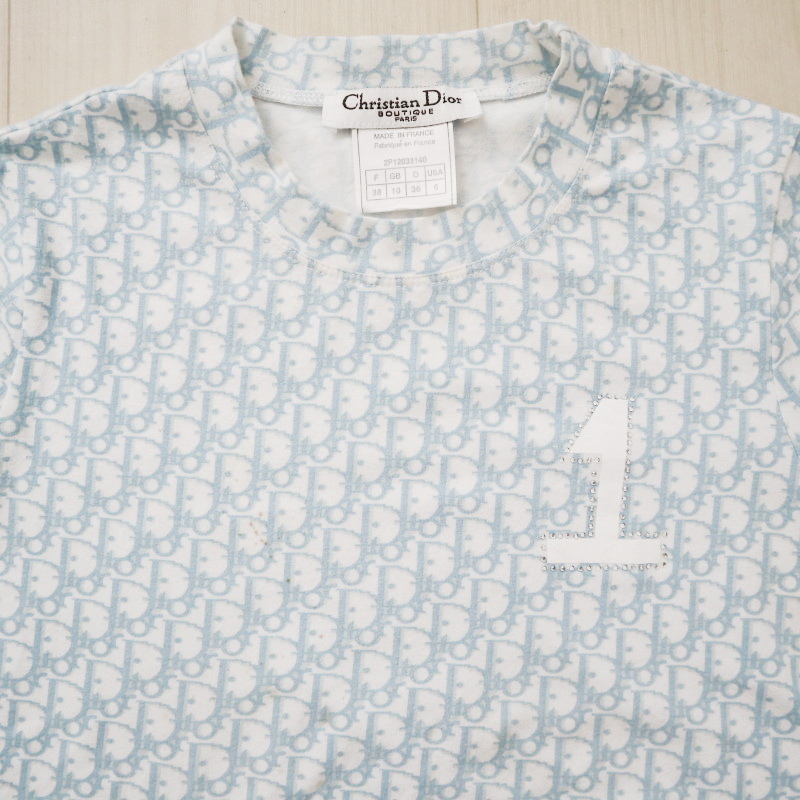 Christian Dior クリスチャンディオール トロッター No1 コットン/ライクラ 半袖 カットソー トップス F38 ライトブルー/ホワイト K10-k023 收藏