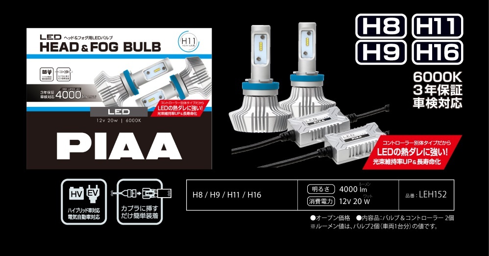 | 出品物名 | PIAA (ピア) LEH152 H11 6000K LED ヘッド&フォグ用バルブ 新品 |
