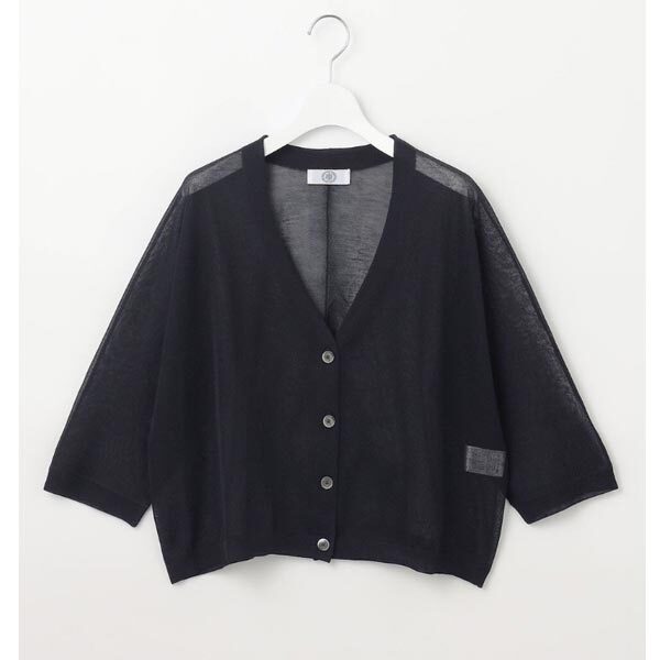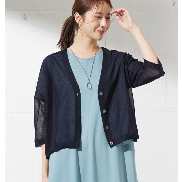 広めの袖幅で羽織りやすい、爽やかなシアー素材のVネックカーディガン