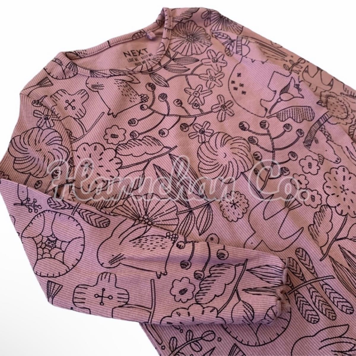 ●未使用●2-3才 パープル 北欧風イラスト柄 リブ ロンT 收藏