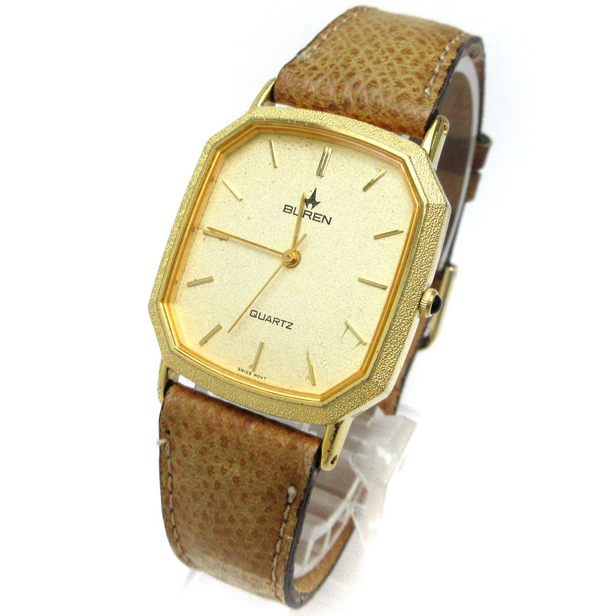 ビューレン メンズ ゴールド 革 アイボリー文字盤 BU-9003 時計 BUREN クォーツ 稼動品 收藏