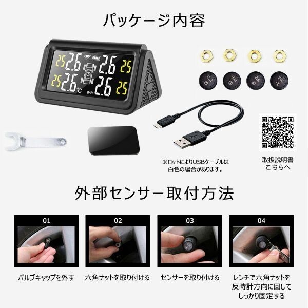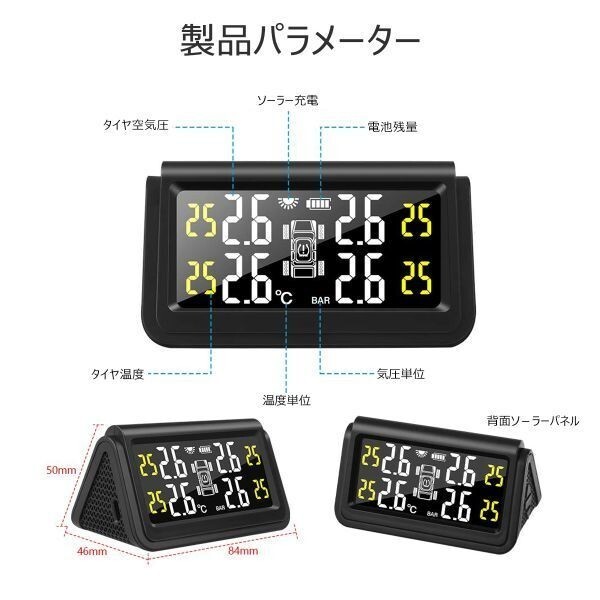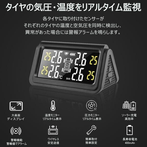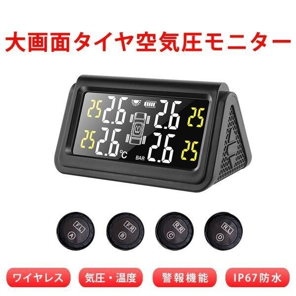 タイヤ空気圧センサー 280S タイヤ空気圧モニター タイヤ空気圧監視システム 大画面 TPMS ワイヤレス タイヤ 空気圧 温度 リアルタイム監視 計測 ソーラー充電 USB充電 LCD 無線 取付簡単 日本語マニュアル付き 1ヶ月保証