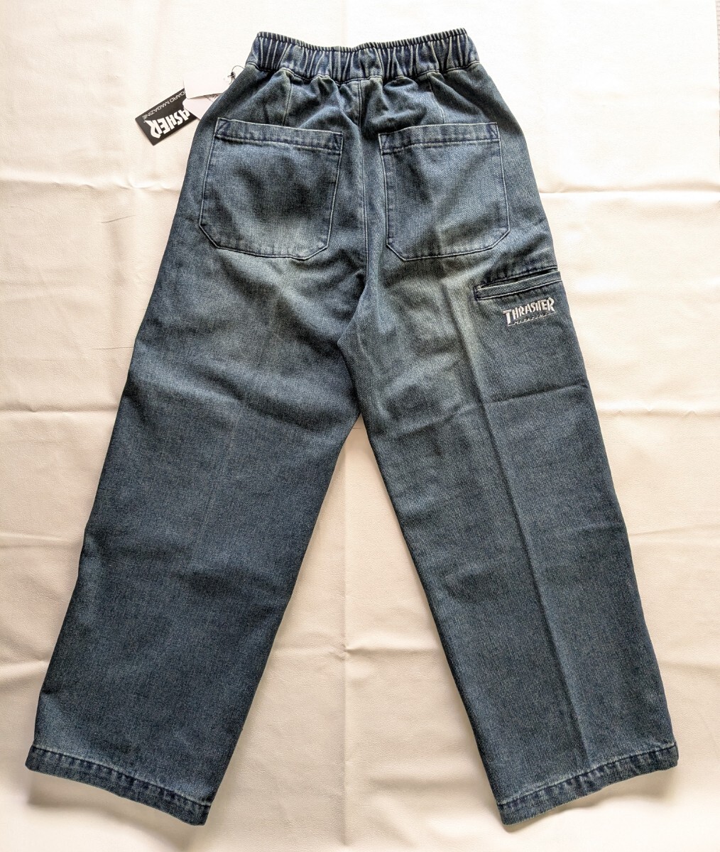 新品 タグ付き THRASHER パンツ 未使用 スラッシャー ダブルニー S インディゴ 青 ステッカー付き 收藏