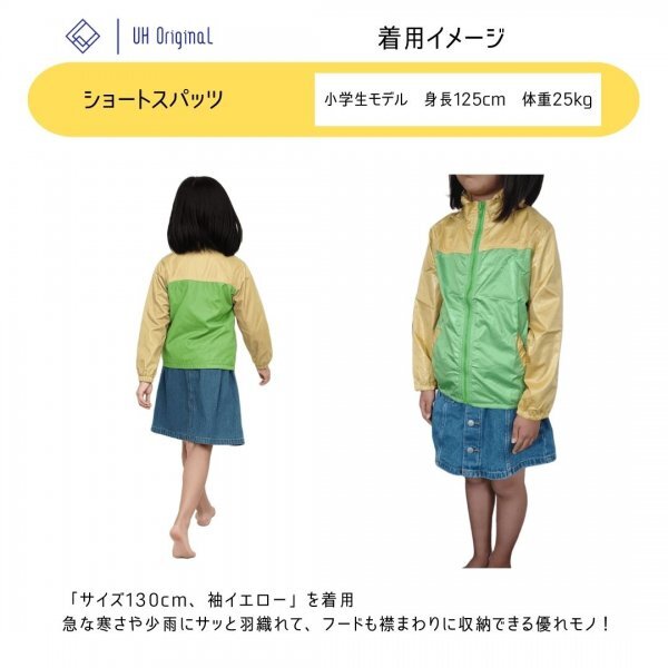【即日出荷】ウインドブレーカー キッズ 100 ジャンバー マウンテンパーカー トップス 黄 袖イエロー フード付き ポケッタブル 収納袋付き 收藏