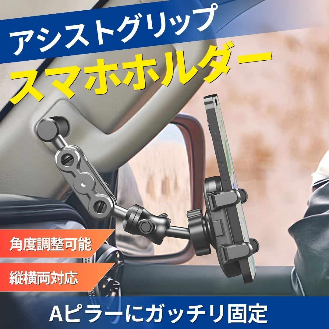 スマホホルダー アシストグリップ 車載 スマホスタンド 自動車 マウントアーム Aピラー アクセサリー ランクル ハイエース ジムニー 收藏