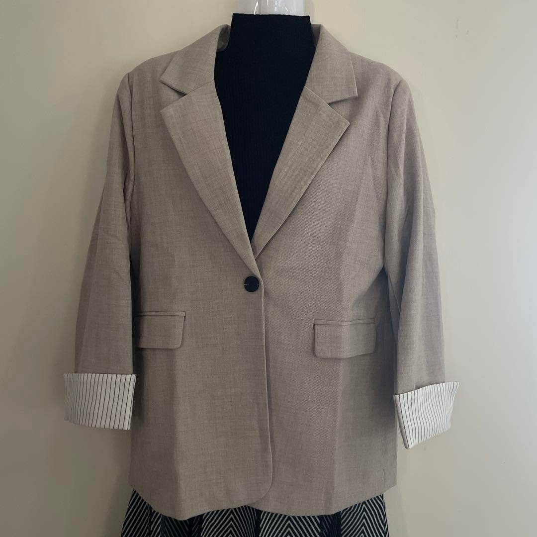 カジュアルジャケット ベージュ系 3L レディース 春秋 ゆったりスーツ 送料無料 大きいサイズ 通勤 飲み会 フォーマル カジュアル 收藏