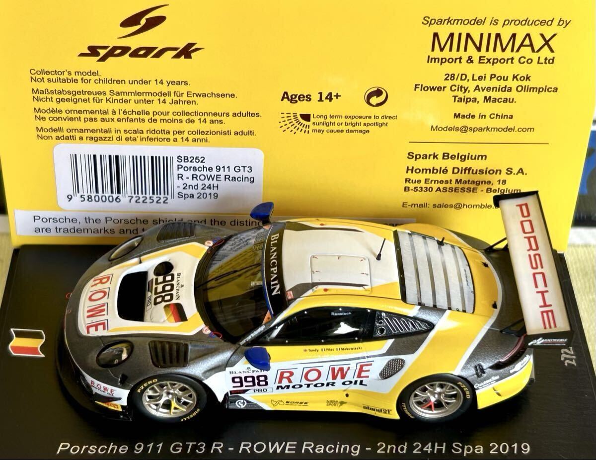 スパーク Spark 1/43 Porsche 911 GT3 R - POWE Racing n°988 - 2nd 24H Spa 2019 F.Makowiecki - P.Pilet - N.Tandy [SB252] 272/500 收藏