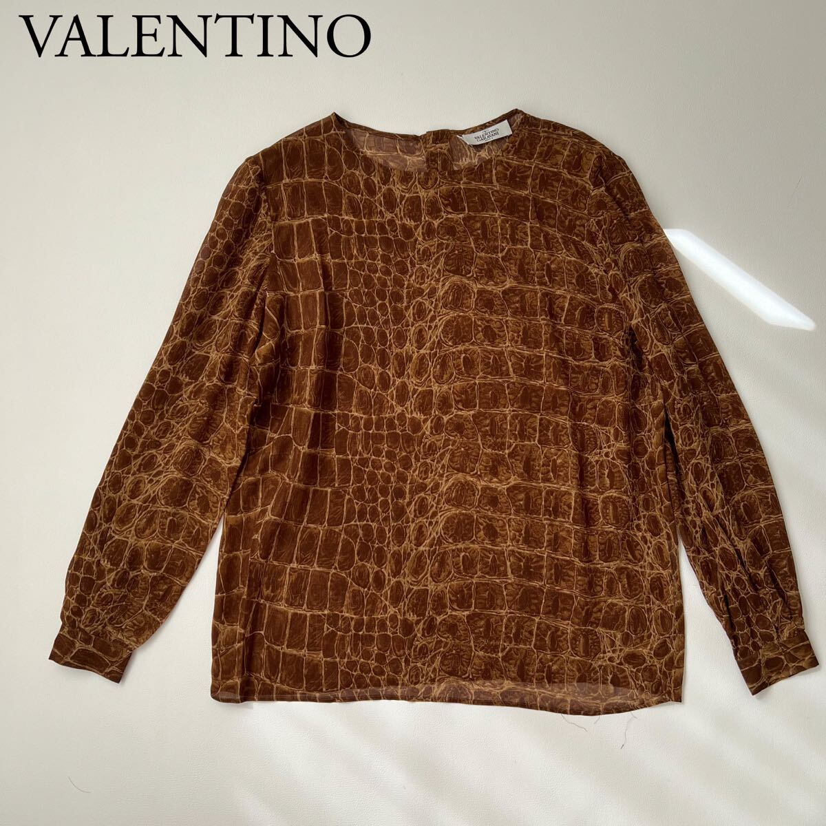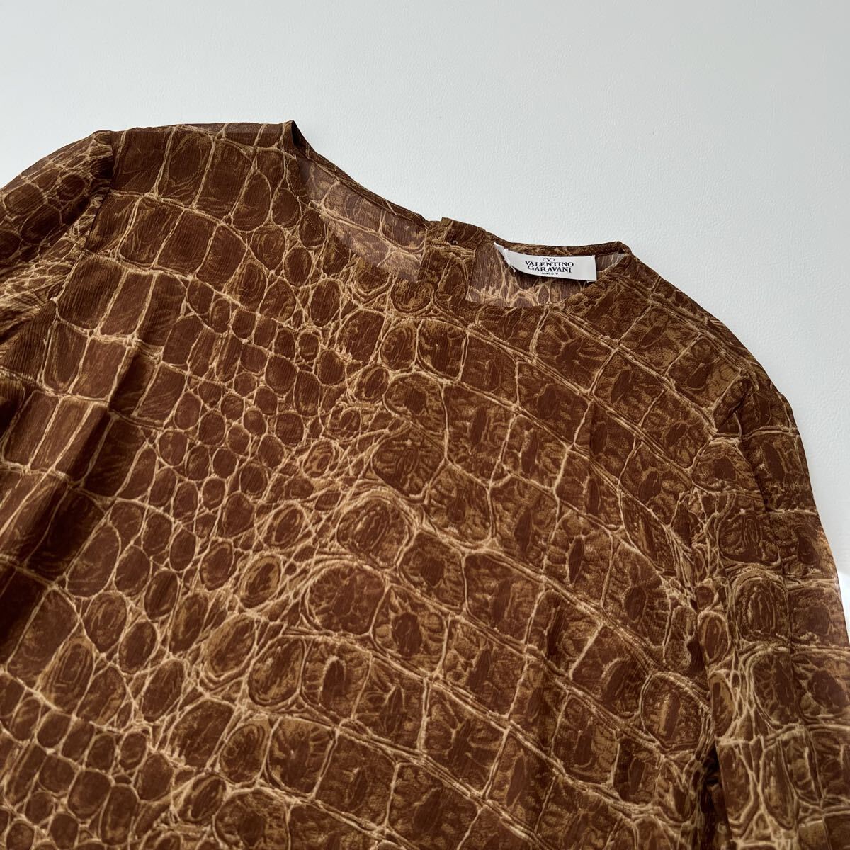 良品 Valentino Garavani ヴァレンティノガラヴァーニ MISS V ブラウス トップス 総柄 クロコダイル シアー素材 vintage 44 レディース 收藏