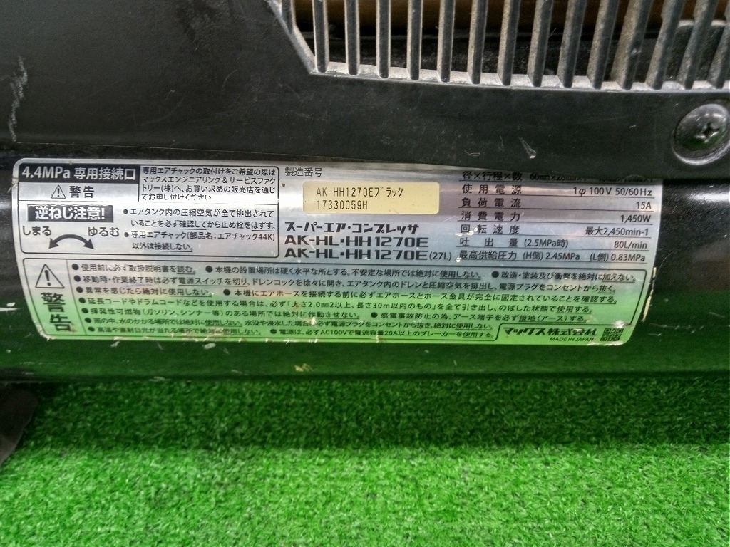 【セール品】 中古品 MAX マックス 45気圧 高圧 エアコンプレッサー AK-HH1270E タンク容量11L ブラック 收藏