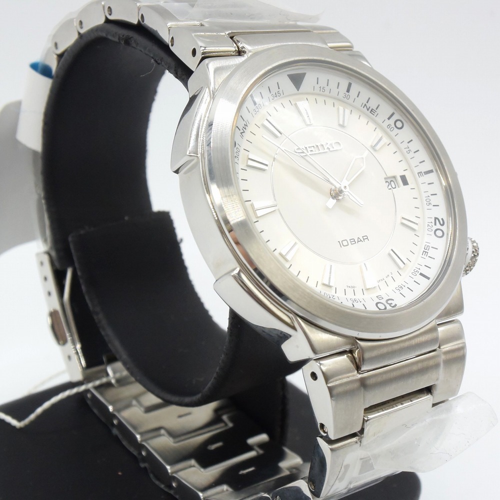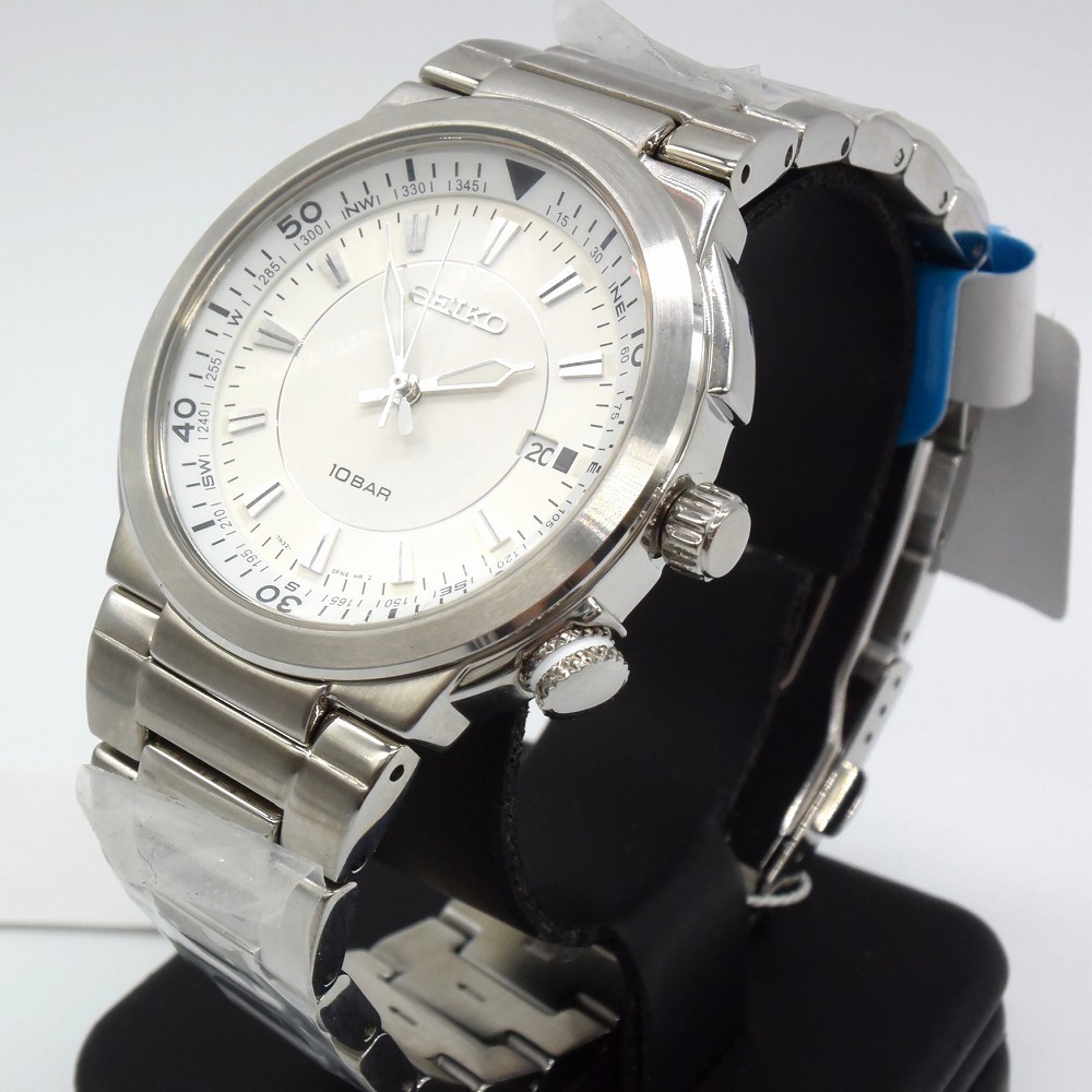 新古品 SEIKO セイコー インターナショナルコレクション 7N32-0DN0 デイト 10気圧防水 簡易方位計付き 白文字盤 腕時計 ステンレス メンズ 收藏
