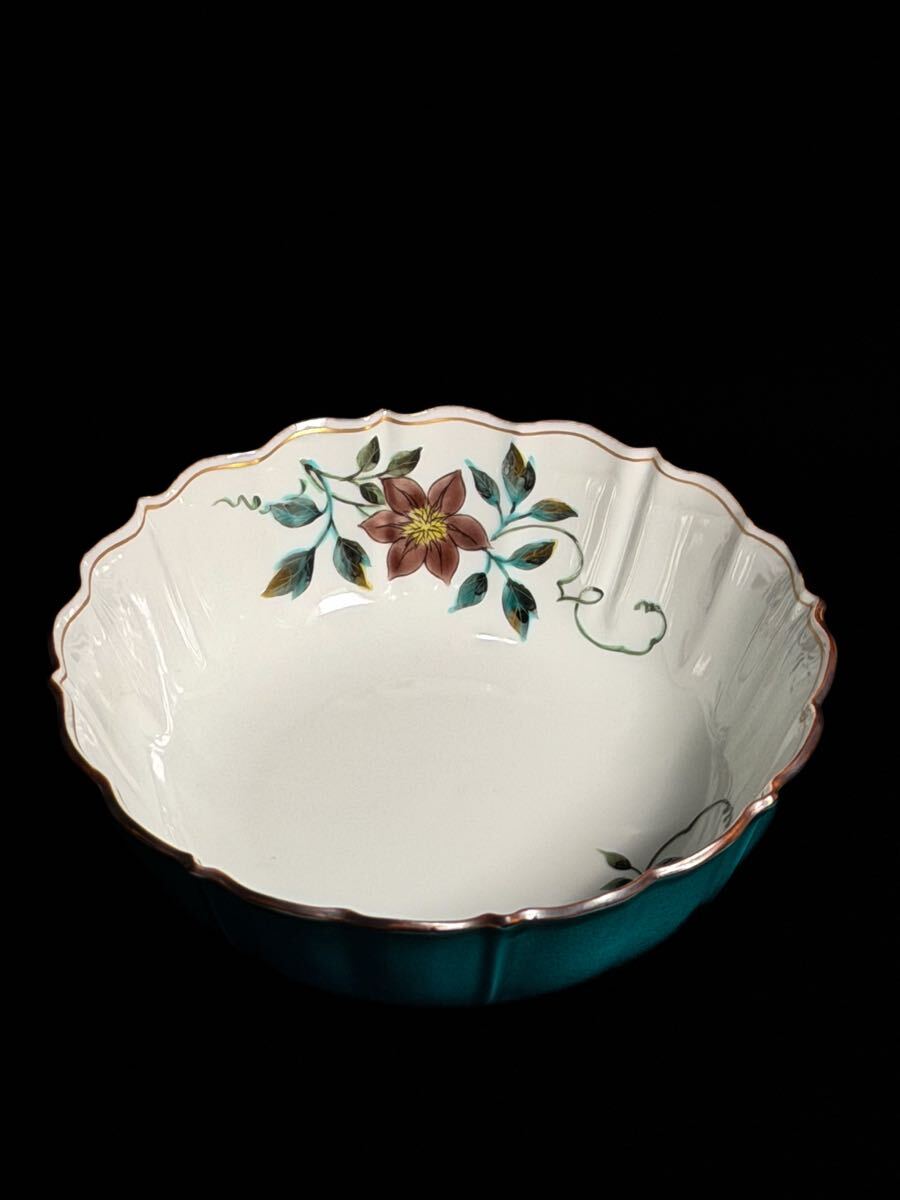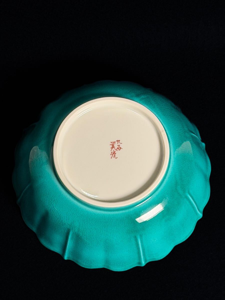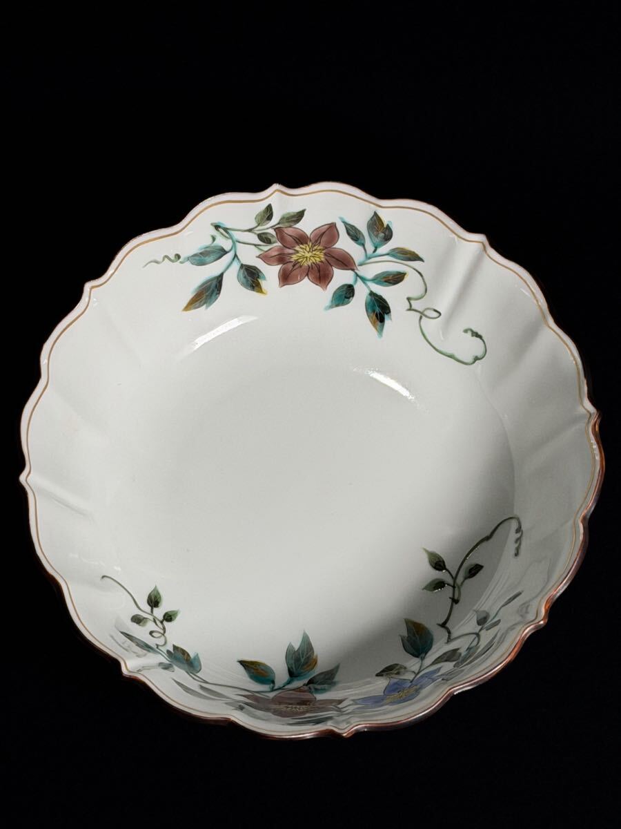 美品 人間国宝 三代 吉田美統 色絵鉄仙文 菓子鉢 共箱 共布 栞 菓子器 收藏