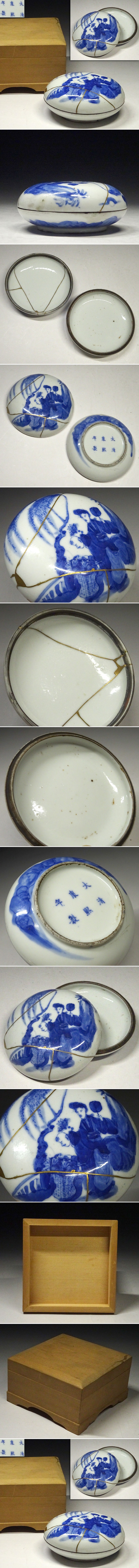 緑屋h■ 中国古玩 染付 香合 合子 大清康熙年製 木箱 唐物 時代物 i9/10-6053/29-7#60 收藏