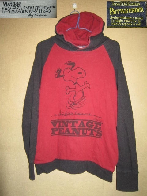 レア BITTER ENDER x Vintage PEANUTS ピーナッツ スヌーピー デカロゴ ラグラン スウェット パーカー M ビターエンダー ヴィンテージType 收藏