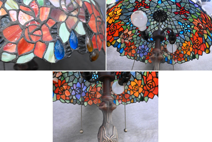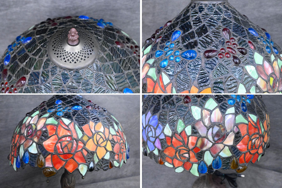 AH251 アンティーク レトロ 当時物 希少デザイン ステンドランプ 卓上照明 テーブルランプ ステンドグラス 極上品 收藏