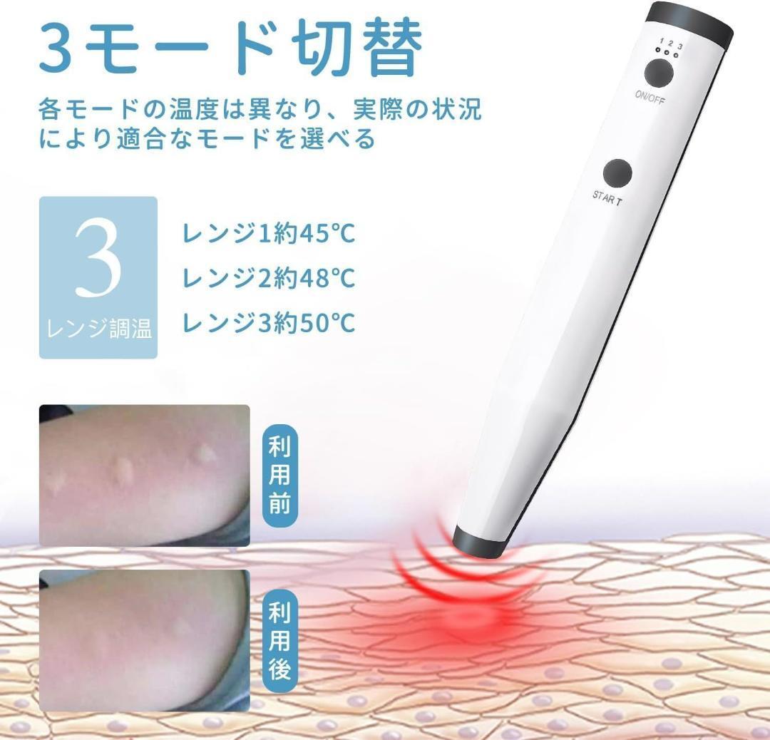 【かゆみ止めの原理】痒み止め:医薬品や化学物質ではなく、熱パルス技術により、皮膚を加熱して、蚊に刺されたときに注入された唾液タンパク質を破壊し、非化学的方法でかゆみをすばやく緩和します。蚊だけでなく、虫に噛まかゆいところにいつでも使用可能です。