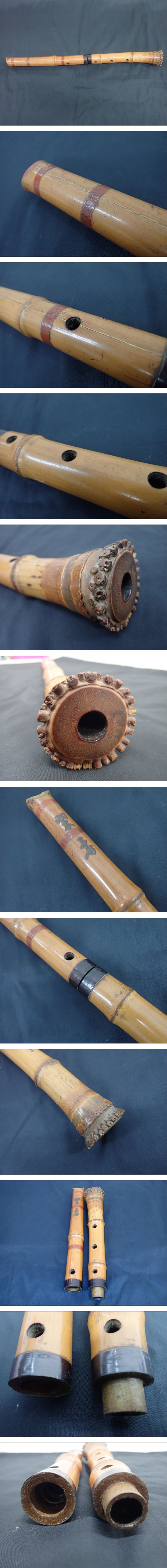 K031-80 ②琴古流 古竹尺八 大日本竹道学館 兼安洞童作 蒔絵・漆塗 継ぎ管 在銘 竹造 時代和楽器 全長 58cm・重量 451g 收藏