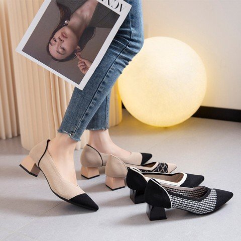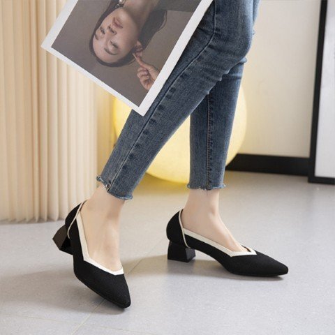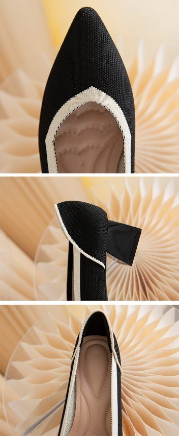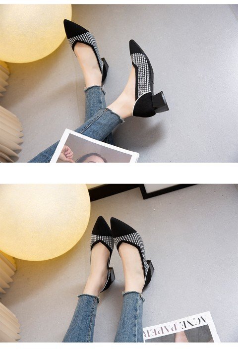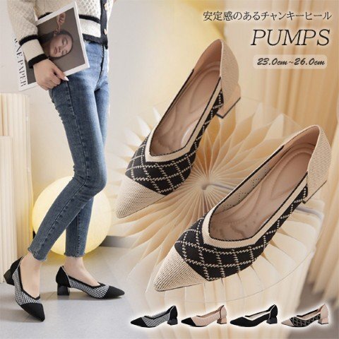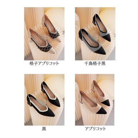 レディース パンプス チャンキーヒール 安定感 太ヒール 美脚 ポインテッドトゥ 25.0cm(40) 黒 收藏