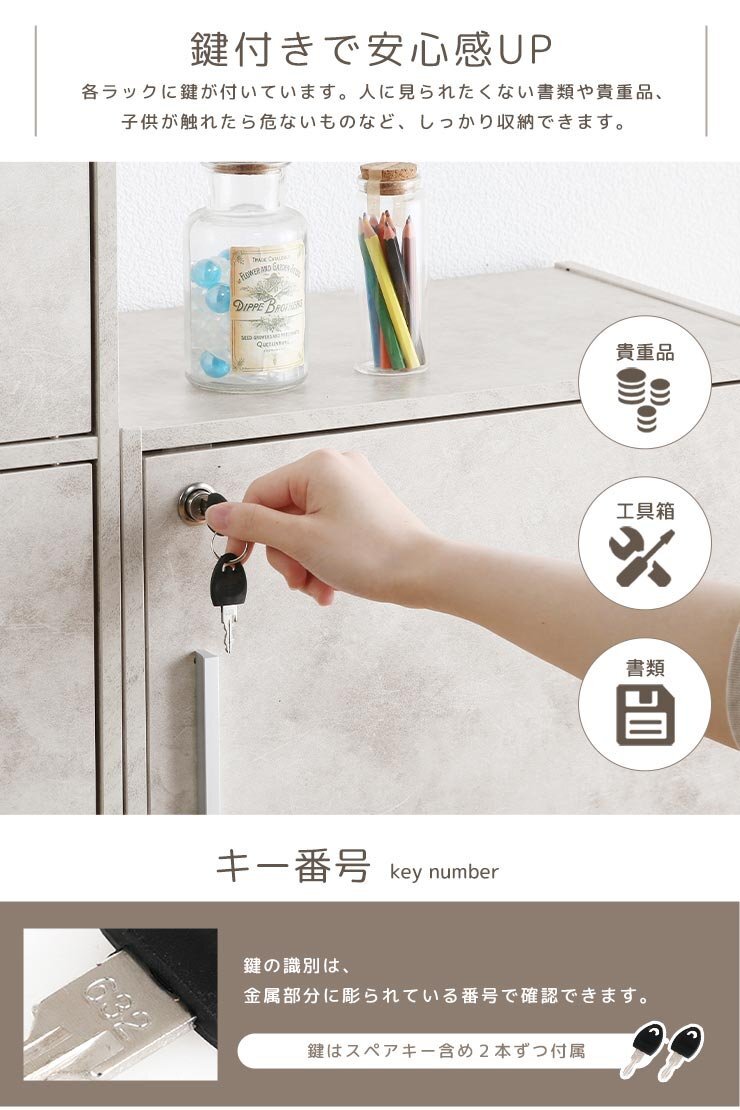 安全・安心! 全扉 鍵付き 収納カラーボックス 2段タイプ 単独キー仕様 木製 収納BOX 2段 鍵付き収納 かんたん組み立て 收藏