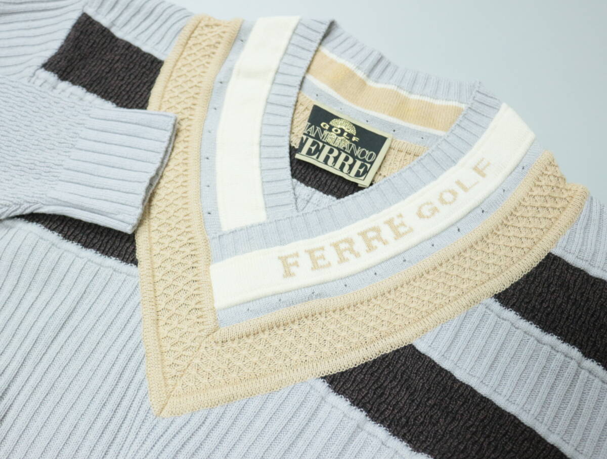 B881/GIANFRANCO FERRE/ジャンフランコフェレ/GOLF/日本製/ニットセーター/ウール×コットン/Vネックニットセーター/50サイズ/ 收藏