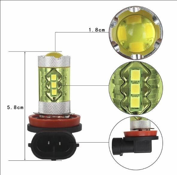 12VH8/H11/H16 80W 3000K 2828チップ LEDフォグランプ LEDフォグ バルブ 黄色 イエロー 2個セット WD23 收藏
