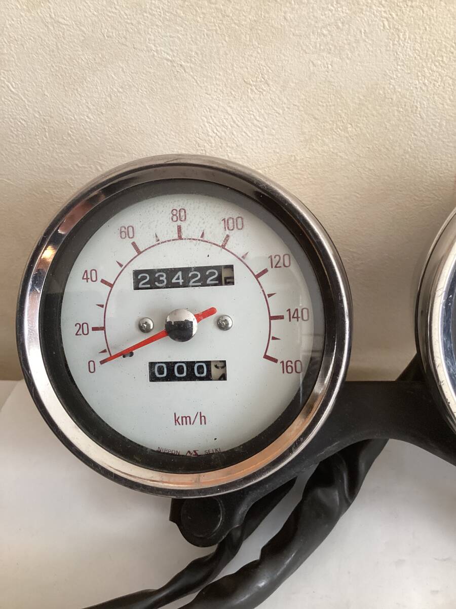 | YAMAHA SR400 純正メーター 23422km こちらの商品は実動車より取り外したものとなります。 本体にスレ、サビあります。 メーターのガラス面、内側からの汚れあります。使用には問題ありません。 画像5枚目、赤丸の箇所部品がございません。 画像でご確認ください。 配線のカプラー部分も割れ等ございませんのでそのまま使用いただけます。 純正戻しや、部品ストック等にいかがでしょう。 | |||||||||