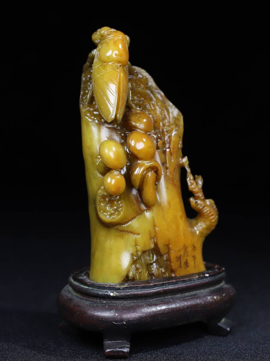 唐物 清時代 壽山石 『枯れ木が春になると驚く』 田黄石彫 手彫り 印章 印鑑 印璽 極細工 置物擺件 古美術品 時代物 旧家蔵出 fx10.24 收藏