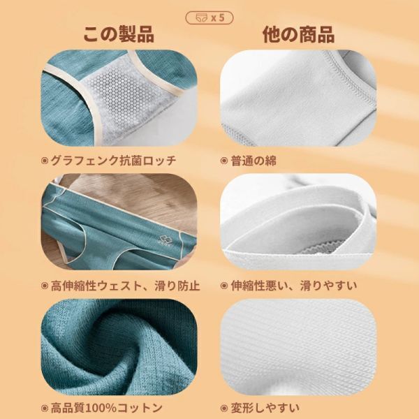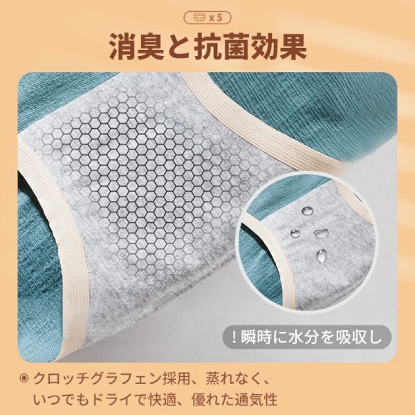 ・ふわふわで柔らかく、肌に優しいですので、敏感肌にも安心できます。クロッチ部分は今流行ってるグラフェンを使って、抗菌、通気、消臭の特徴あります。