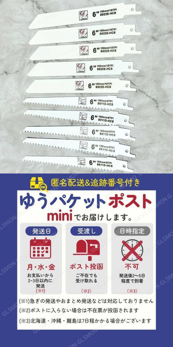 レシプロソー 替刃 セーバーソー 替え刃 木工 鉄工 150mm 10本 ブレード マキタ ボッシュ ハイコーキ 日立 リョービ カッター 工具 電ノコ 收藏