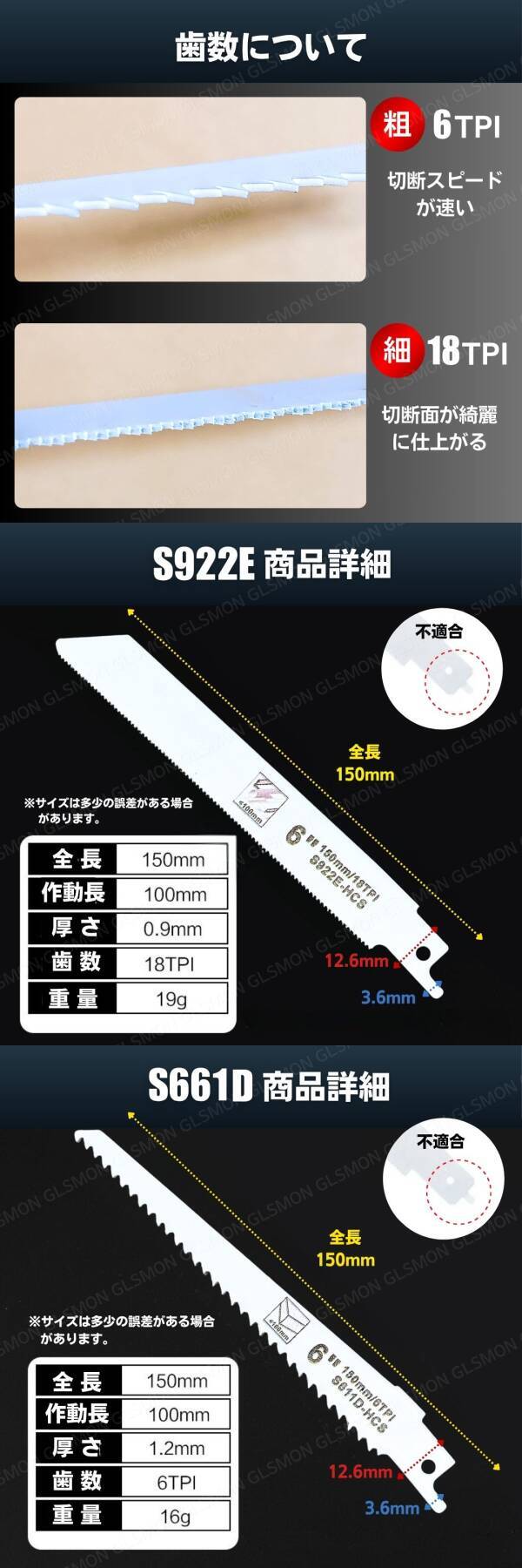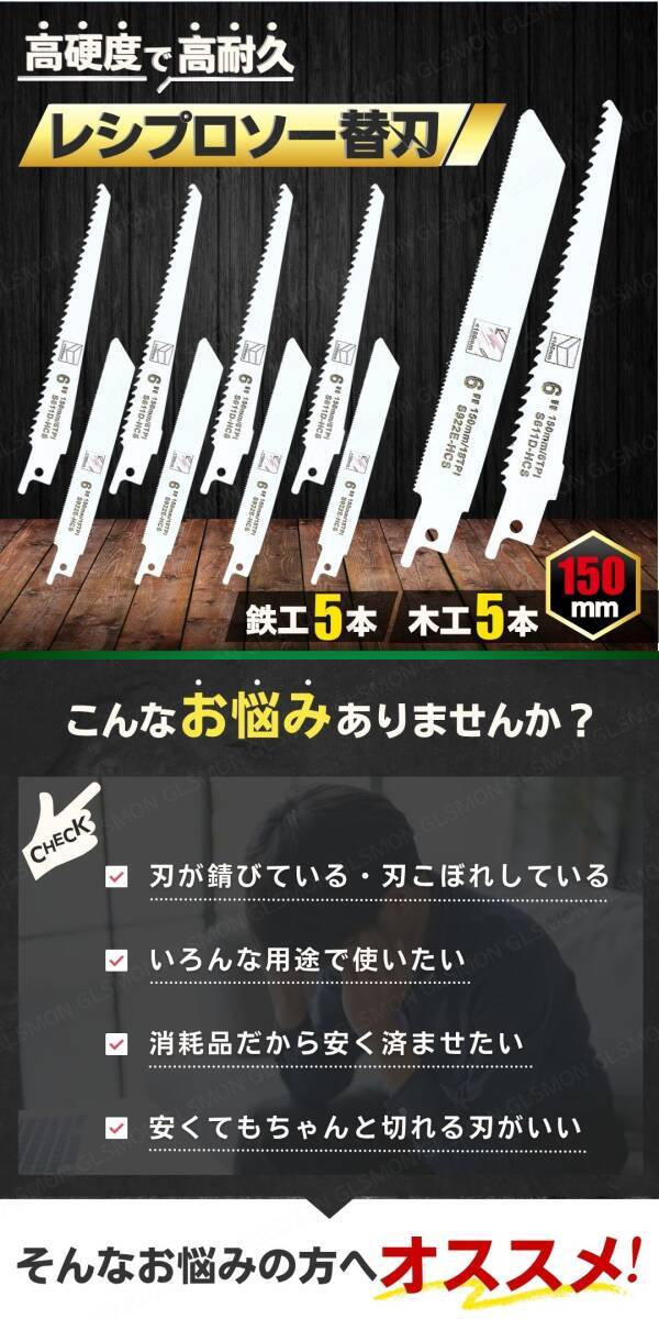 | レシプロソー 替刃 150mm 木工用5本 薄金属用5本 セット |