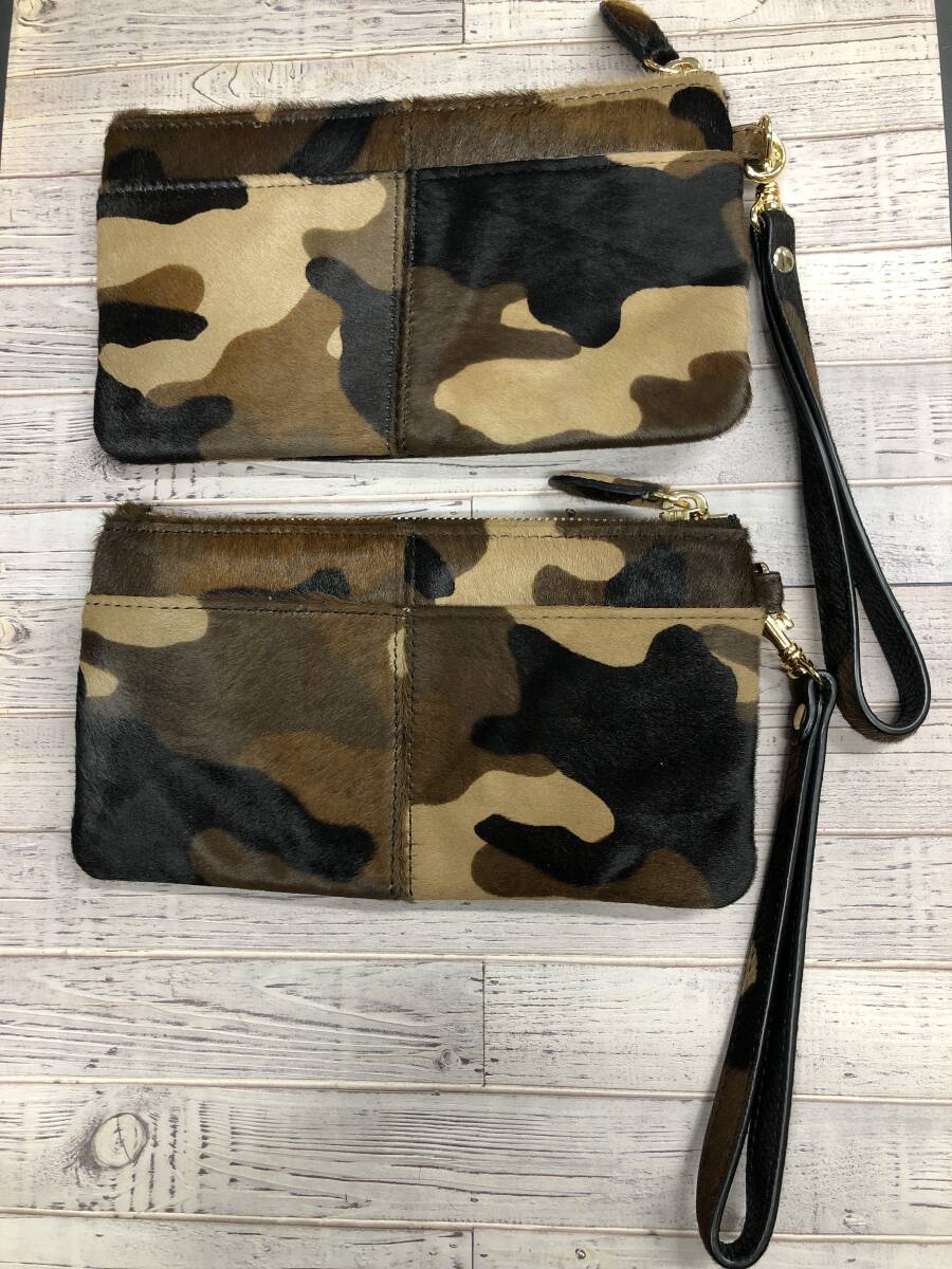 HB5163 ハラコ フラットポーチ 迷彩 カモフラ柄 2個セット マルチポーチ 持ち手付 ポーチ 通帳入れ カード入れ 小物入れ 收藏