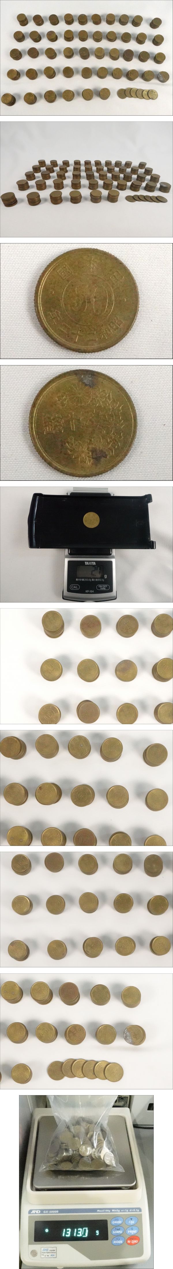 古銭 五十銭 黄銅化 466枚 まとめ 日本 約1313g 昭和 23年 22年 日本國 硬貨 貨幣 | |||