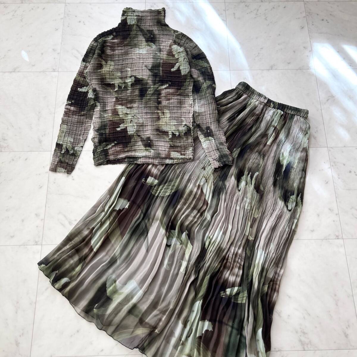 センソユニコ t.b プリーツセットアップ ロングスカート 9号 百合の花 濃淡グラデーション シアー 透け感 ストレッチ 收藏