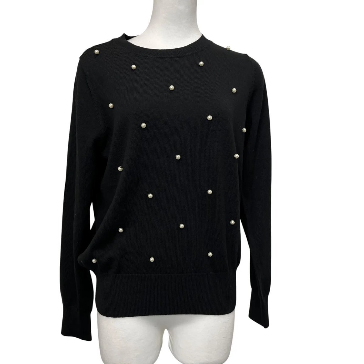 未使用 Tiara ティアラ ニットセーター 長袖 毛100% パール ブラック 黒 サイズS レディース S5U060 收藏