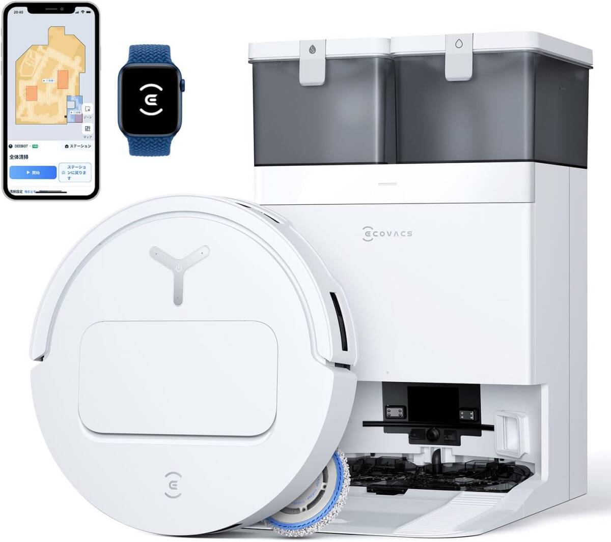 【2025最新 超薄型】ECOVACS(エコバックス) T50 OMNI ロボット掃除機 15000Pa強力吸引 加圧回転式デュアルモップ 水拭き 両用 收藏
