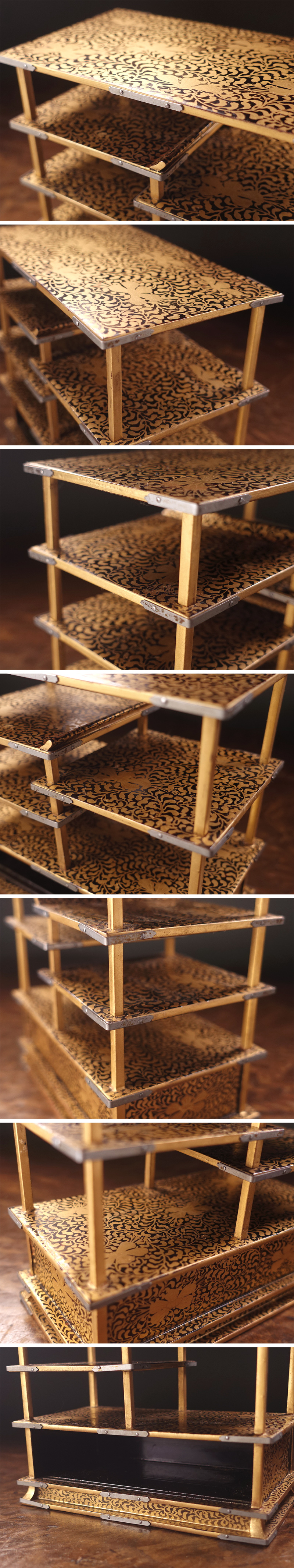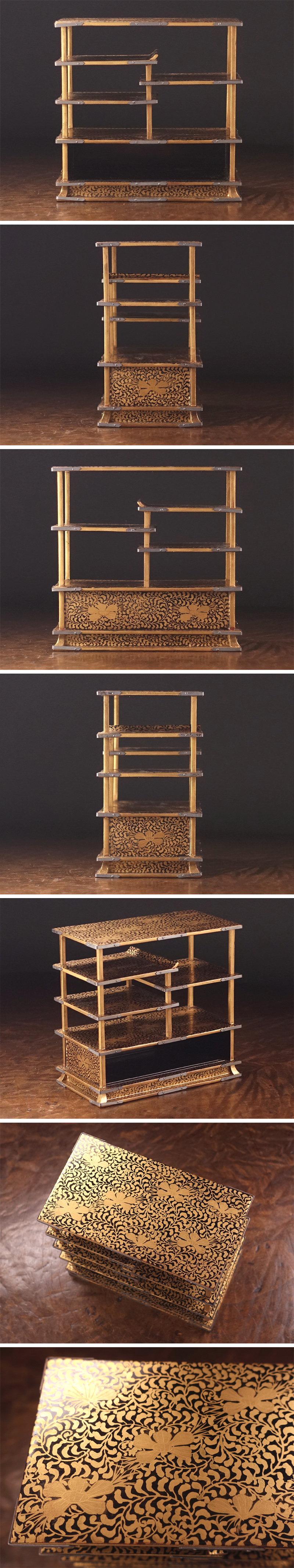 ∇花∇江戸後期~明治時代 名店【七澤屋】謹製 華麗なる御雛道具 大の字牡丹唐草蒔絵書棚 最高級の七澤屋物 大名婚礼調度 收藏
