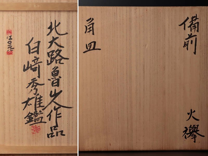 | 【古美味】北大路魯山人作 白﨑秀雄識 備前火襷 角皿 茶道具 保証品 |