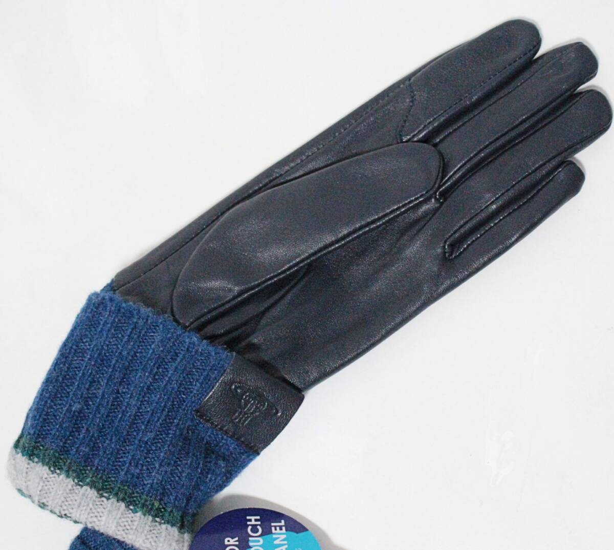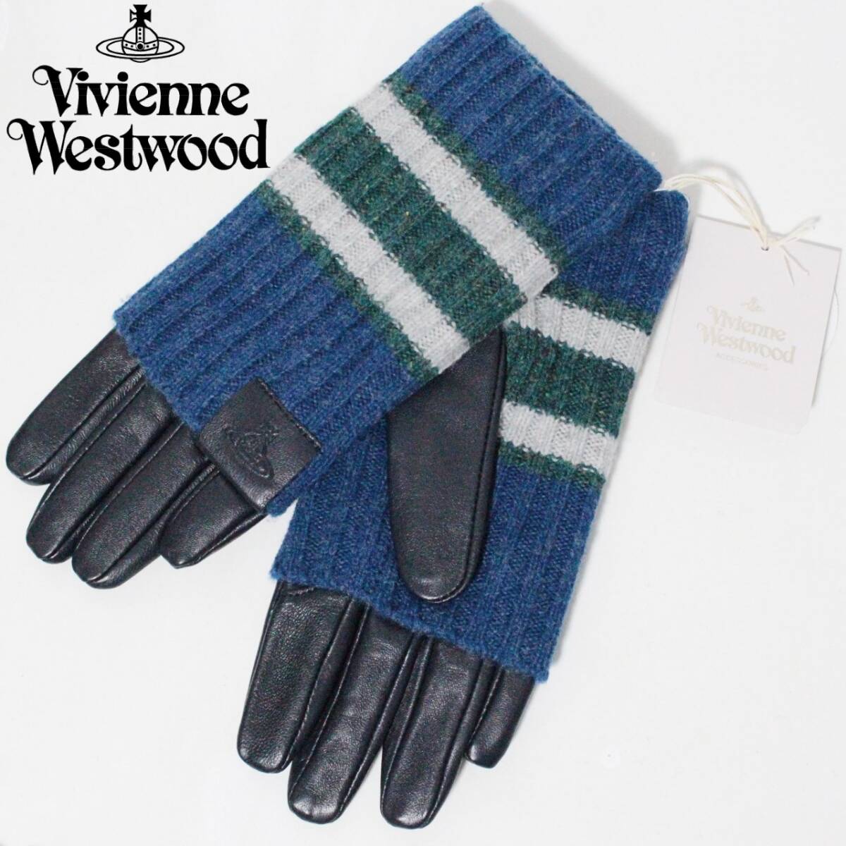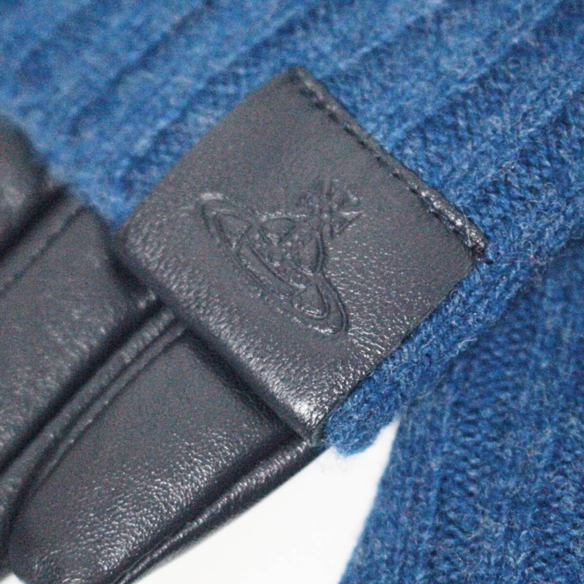 | 未使用 ヴィヴィアンウエストウッド 2WAY タッチパネル対応 レザーニットレイヤード 手袋 20cm 紺 K5800 |